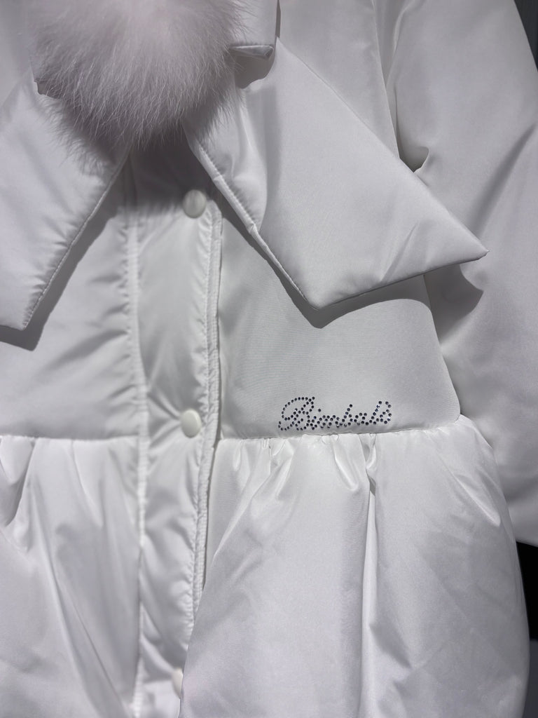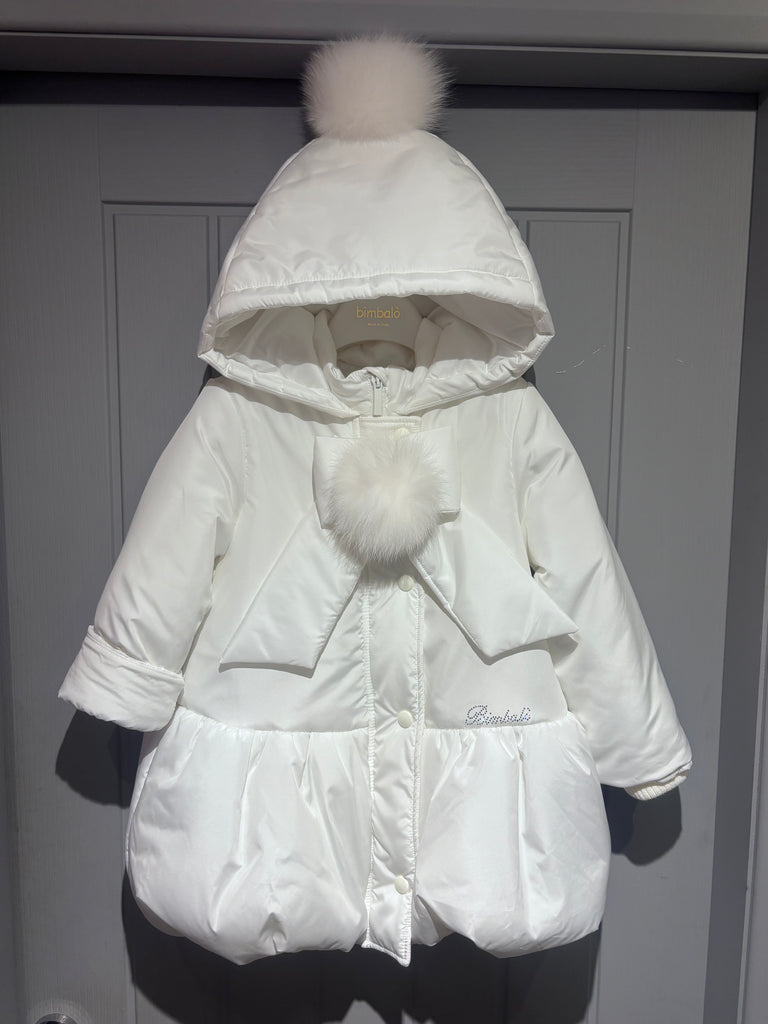 This Cream Bimbalo Coat offers a stylish and functional design with its zip fastening, bow detsil and fur Pom hood. Keep warm and show off your unique fashion sense with this must-have piece.