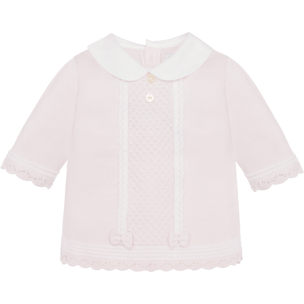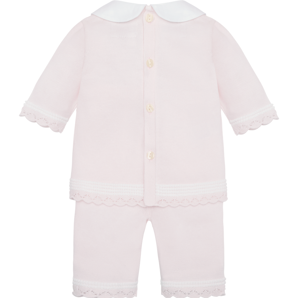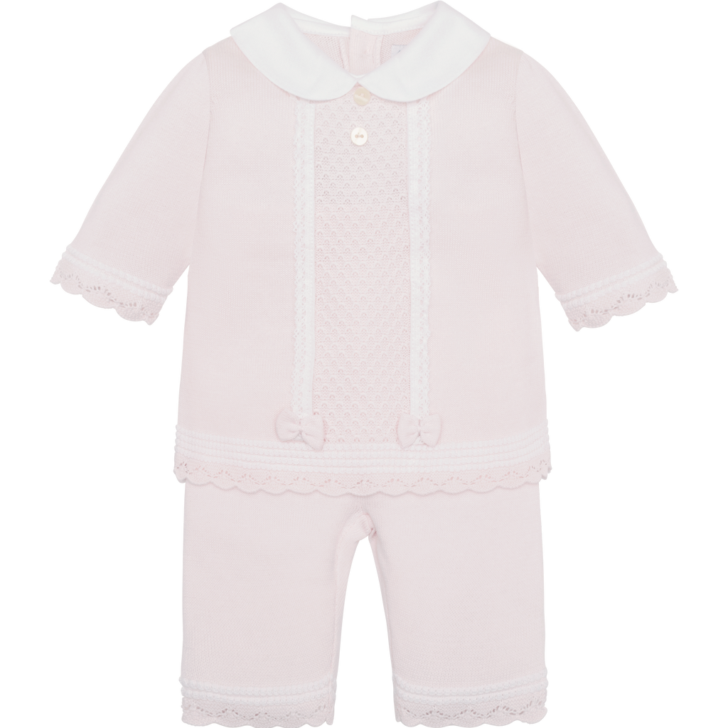 This Emile Et Rose Kacey Set features a delicate pink knitted fabric, combining comfort with elegance. The central lace panel adds a refined touch, while the pretty hems on the trousers enhance the overall feminine appeal. Perfectly crafted for a stylish yet cozy outfit, this two-piece set balances softness and sophistication for everyday wear or special occasions.