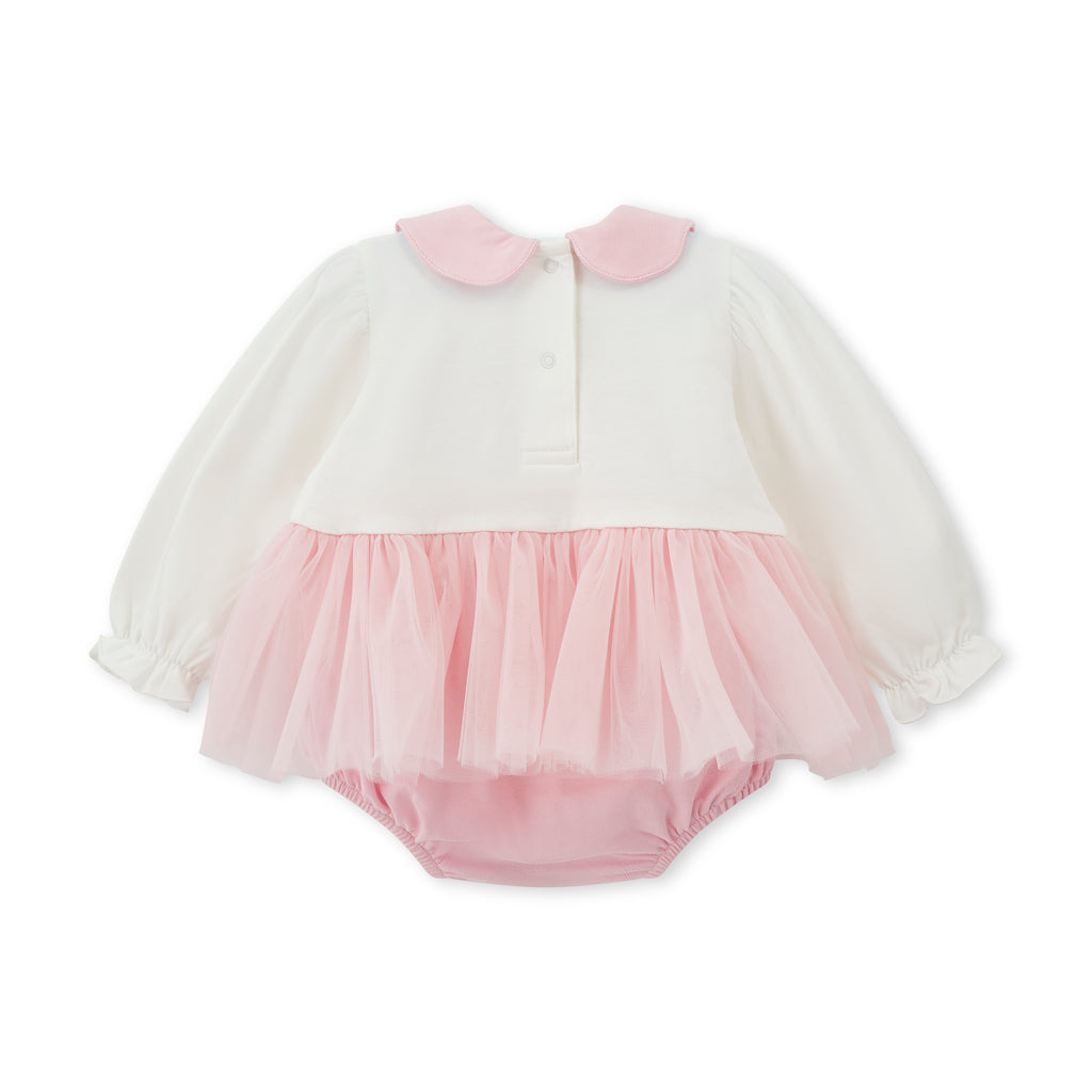 This Little A Kimberly Romper features delicate tulle detailing paired with a charming pink collar, combining elegance with playful style. Crafted for comfort and ease, it offers a refined look perfect for special occasions or everyday wear. The soft fabric and thoughtful design ensure your child stays comfortable while looking effortlessly stylish.