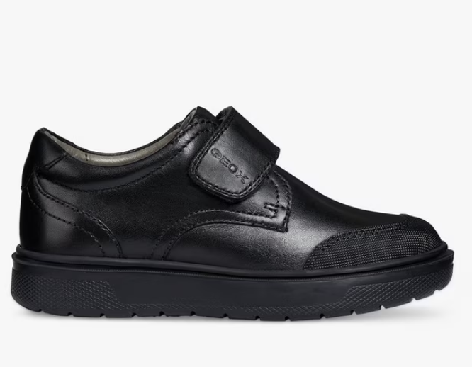 The Black Geox Riddock School Shoe combines classic formal style with practical comfort, making it an ideal choice for school uniforms. Crafted from smooth leather, it offers durability and a polished appearance. Designed for ease of wear, the shoe features an adjustable fit and simple foot entry, ensuring all-day comfort and support for growing feet.