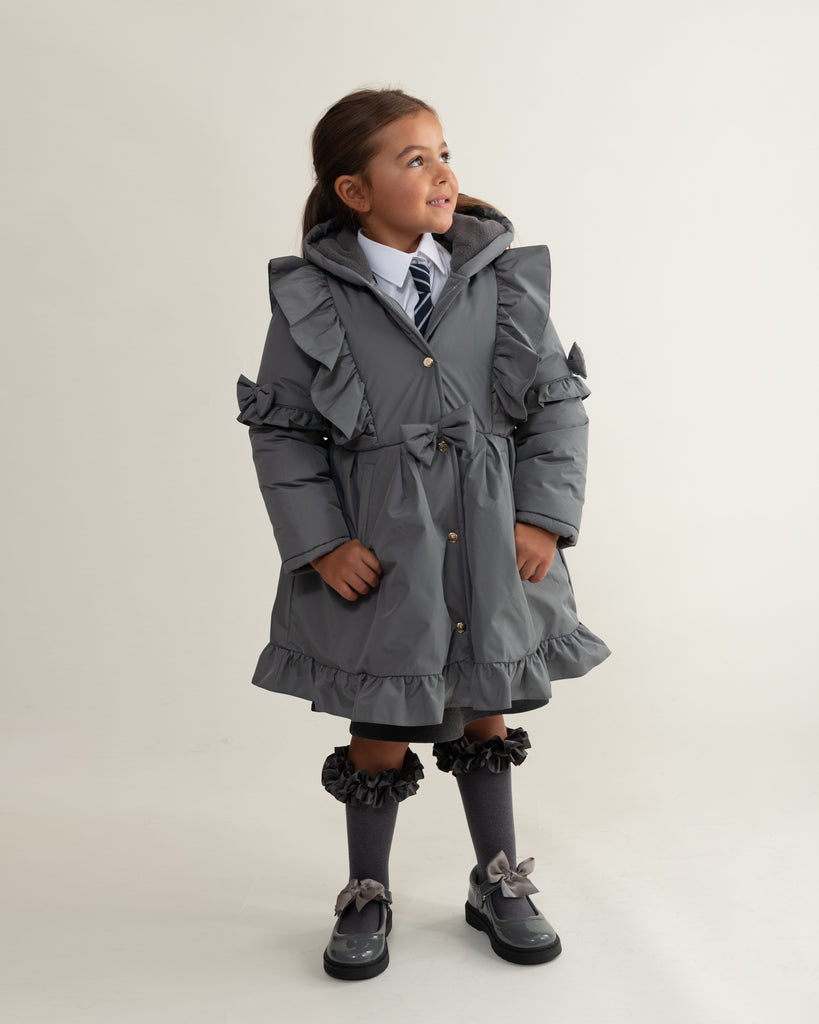Introducing the Caramelo School Coat - a stylish and practical choice for any student. This elegant coat features a skirted design with frill detail, adding a touch of femininity to your school attire. Pre-order now for the upcoming school season!