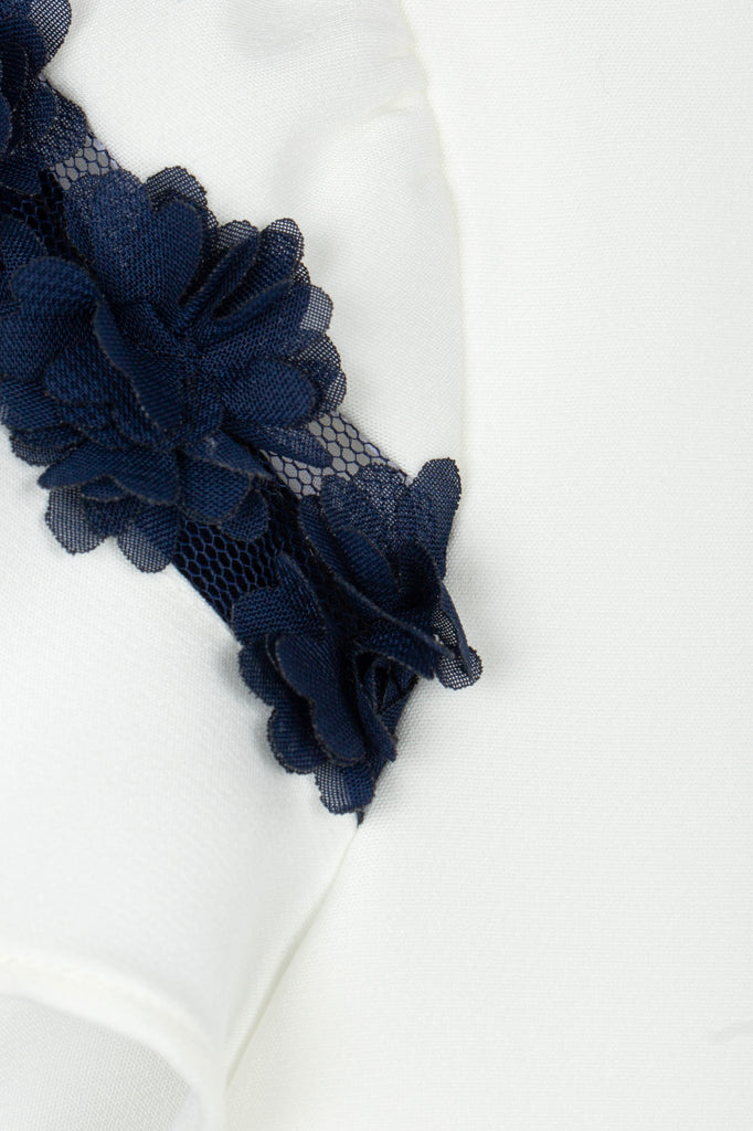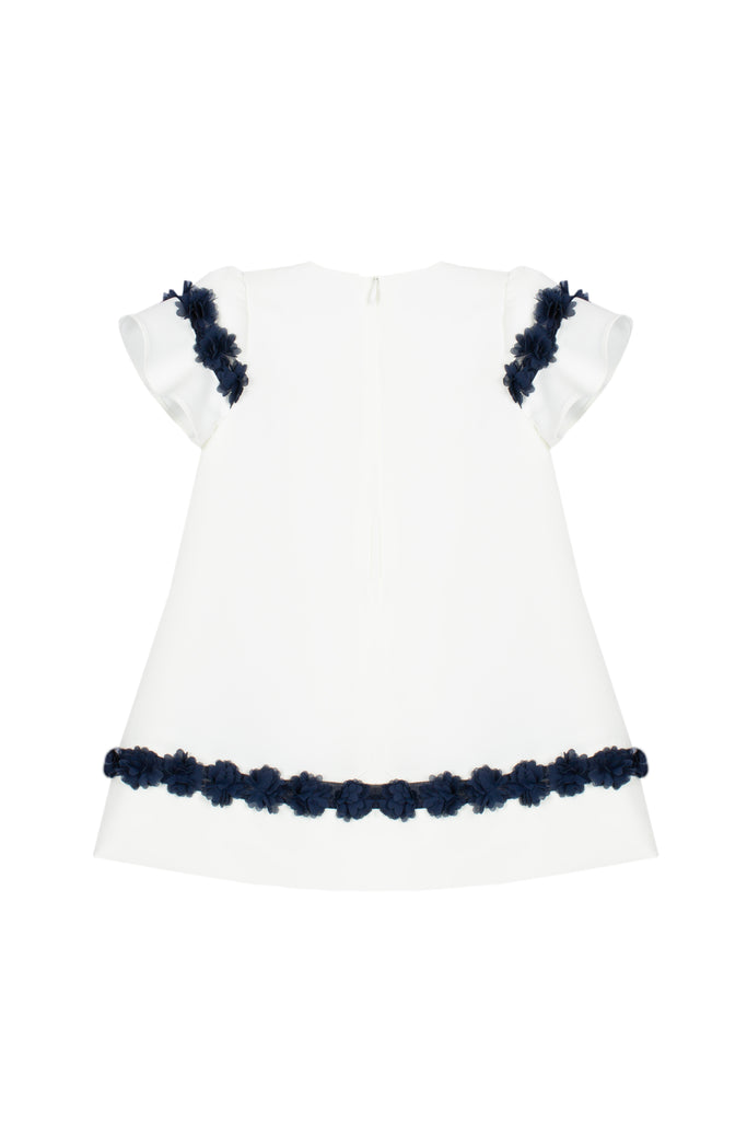 Girls Patachou Dress in crisp white with navy detailing, designed for special occasions. This elegant piece combines timeless style with quality craftsmanship, perfect for celebrations, events, or formal gatherings. The contrasting navy accents add a sophisticated touch to the classic white base, creating a polished look that works beautifully for photographs and memorable moments.
