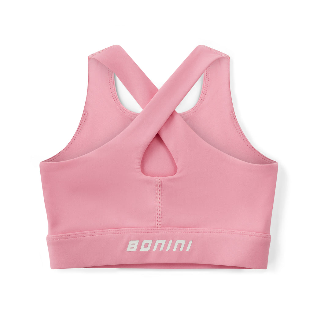 The Pink Bonini Aspire Crop Top offers a contemporary edge with its unique crossover detail, enhancing both style and fit. Featuring printed logo artwork on the front and back, it merges bold branding with modern design, perfect for making a confident statement in any casual or activewear setting.