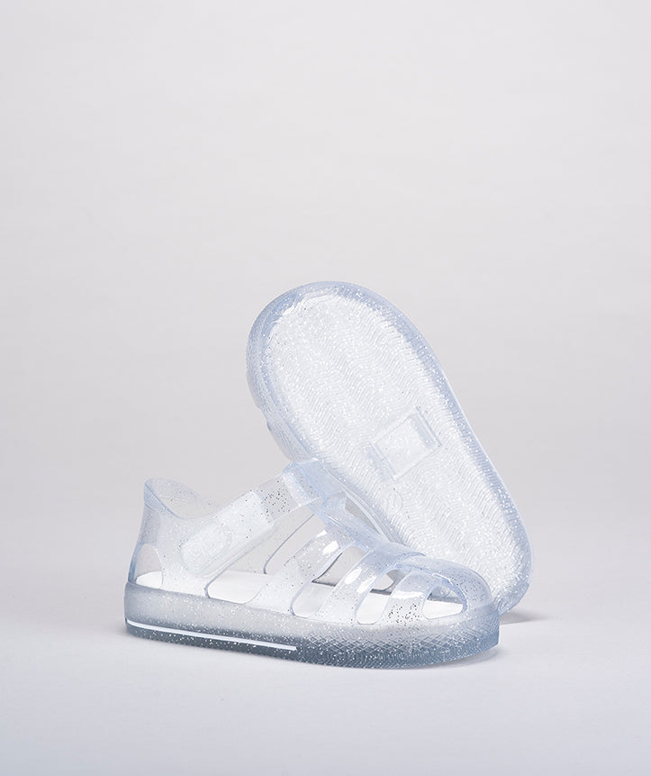 Lightweight jelly shoes designed for active play and easy on-and-off convenience. The soft, flexible material moulds to little feet for all-day comfort, while the secure velcro fastening ensures a snug fit that grows with your child. Perfect for warm weather, water play, and everyday adventures.