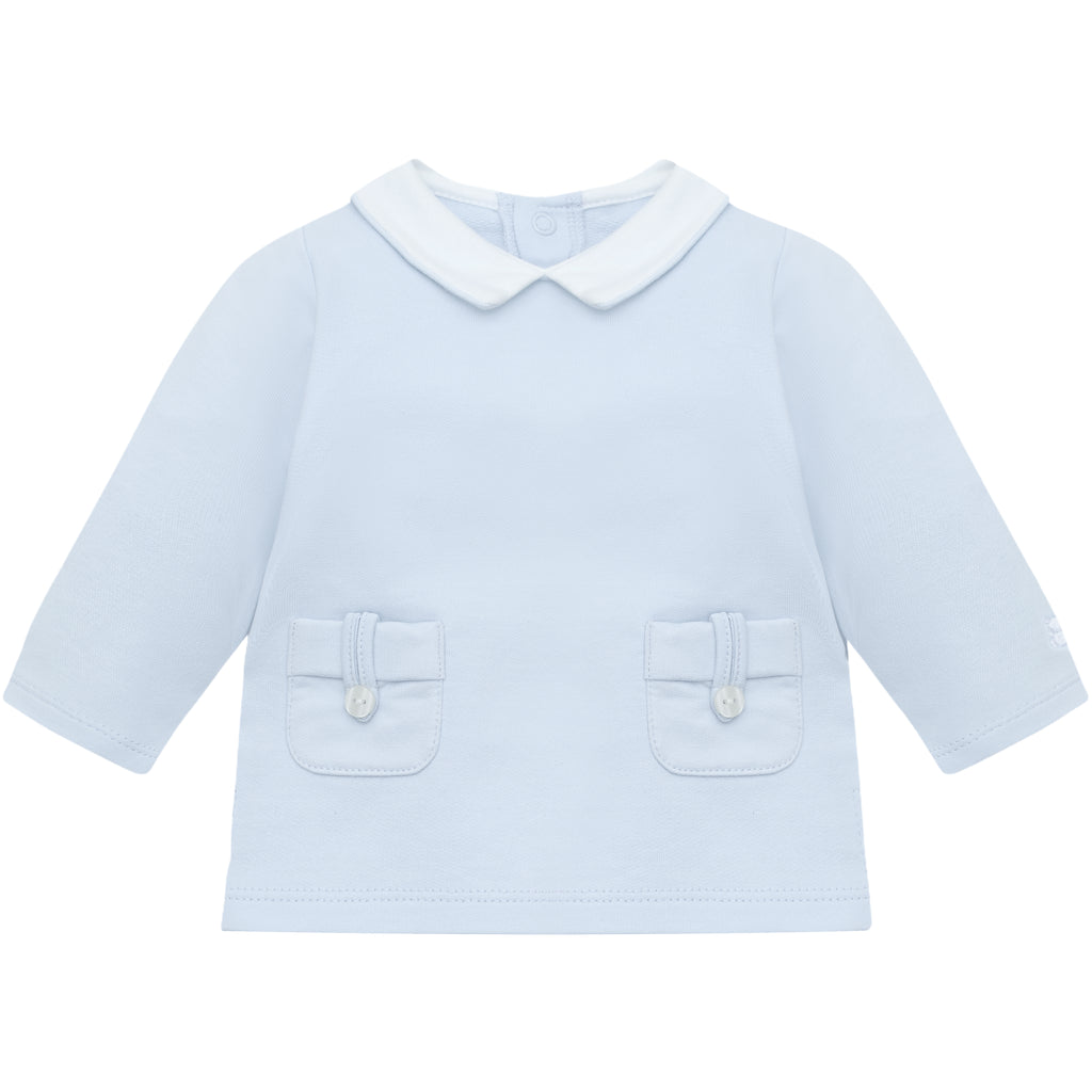 The Blue Emile Et Rose Lennon Set combines timeless elegance with practical design. This two-piece ensemble features a structured top paired with tailored trousers, both crafted with attention to detail. The top showcases a refined collar, whilst the trousers are enhanced with functional button loop pockets—ideal for secure storage. The coordinated set offers a polished, put-together look suitable for various occasions, from casual outings to more formal settings. Quality construction ensures durability and comfort throughout wear.