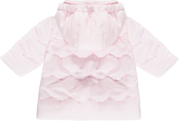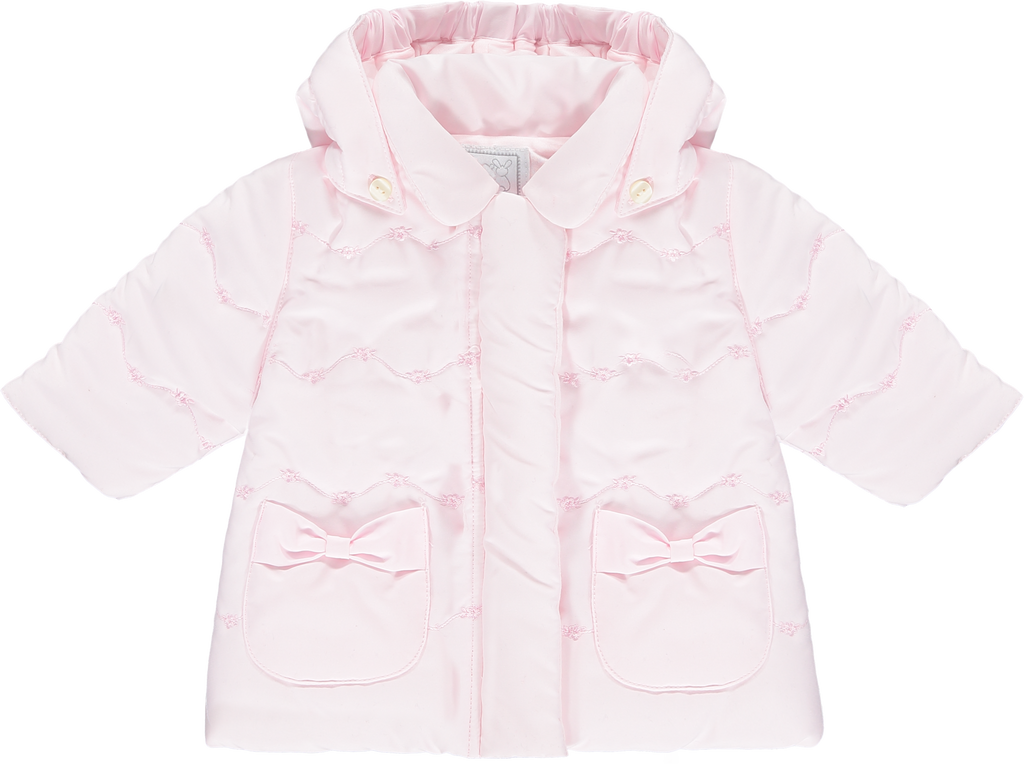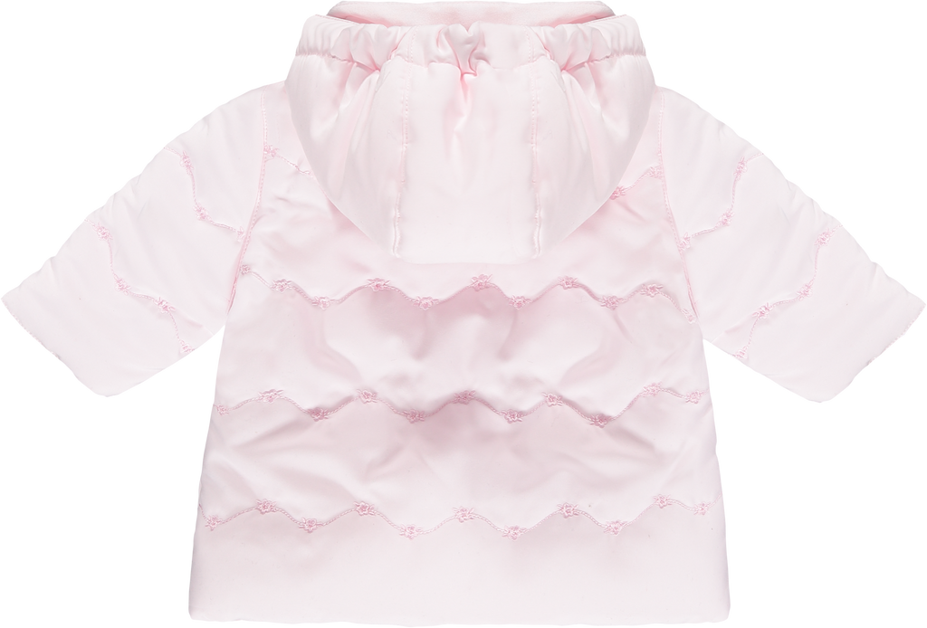This pink microfibre jacket combines delicate flower embroidery on the pockets and mitts with a lightweight, durable fabric. Designed for comfort and style, it offers gentle warmth and easy care, making it an ideal choice for everyday wear. The intricate embroidery adds a refined touch, elevating this practical jacket into a sophisticated wardrobe staple.