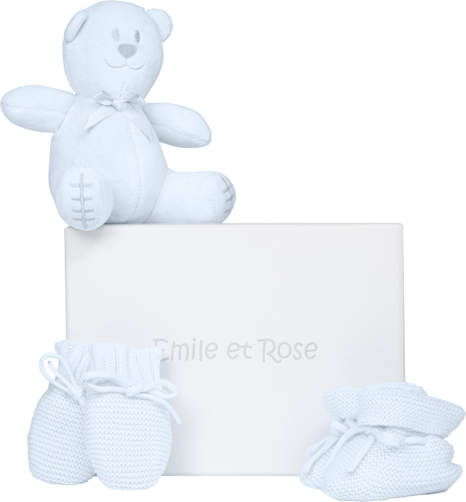 This Blue Emile Et Rose Kelsey Set includes a finely knitted bootie, mitt, and a soft toy, crafted to provide comfort and gentle warmth for newborns. Designed with expert care, each piece offers delicate textures ideal for sensitive baby skin, making it a thoughtful and practical gift for new parents. The coordinated set combines style and functionality, ensuring your gift is both charming and useful.