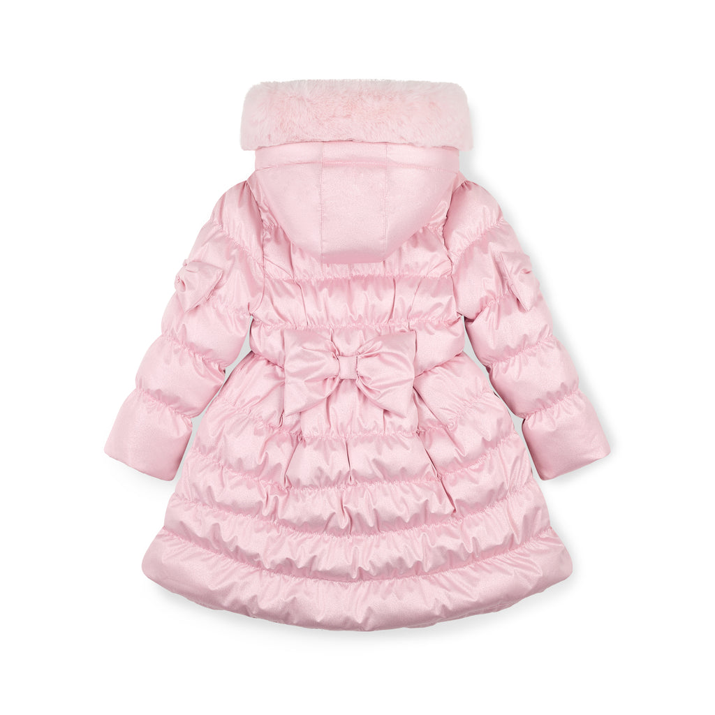 The Pink A*Dee Montana Coat is designed for winter warmth and style. Its padded, fit-and-flare silhouette is enhanced by an elasticated waist for a flattering, comfortable fit. The faux fur-trimmed hood and fleece lining provide extra coziness, while subtle details like a branded badge, zip pull, and decorative bows on each arm add refined touches. This coat combines practical insulation with elegant design, making it a reliable choice for cold-weather wear.